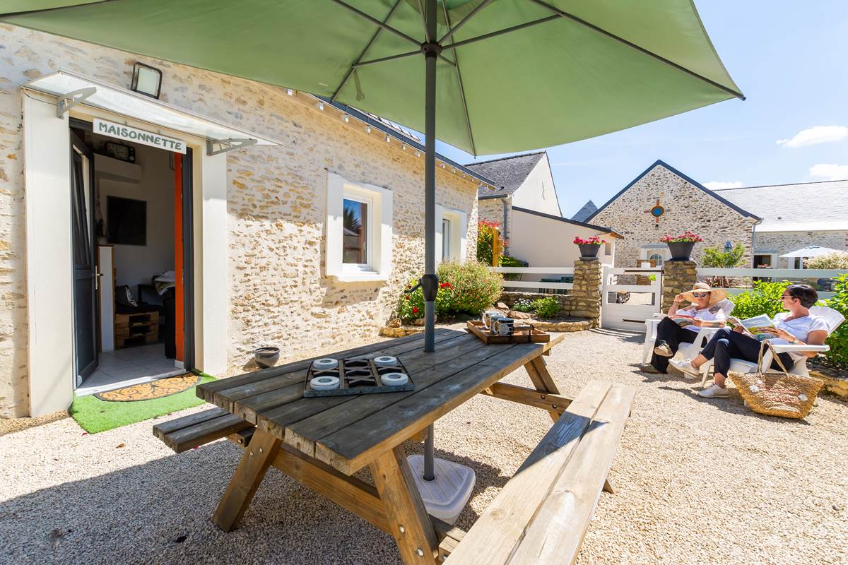 La maisonnette appartient à un semble de 5 gîtes répartis sur le hameau. La piscine est partagée entre les 5 gîtes.